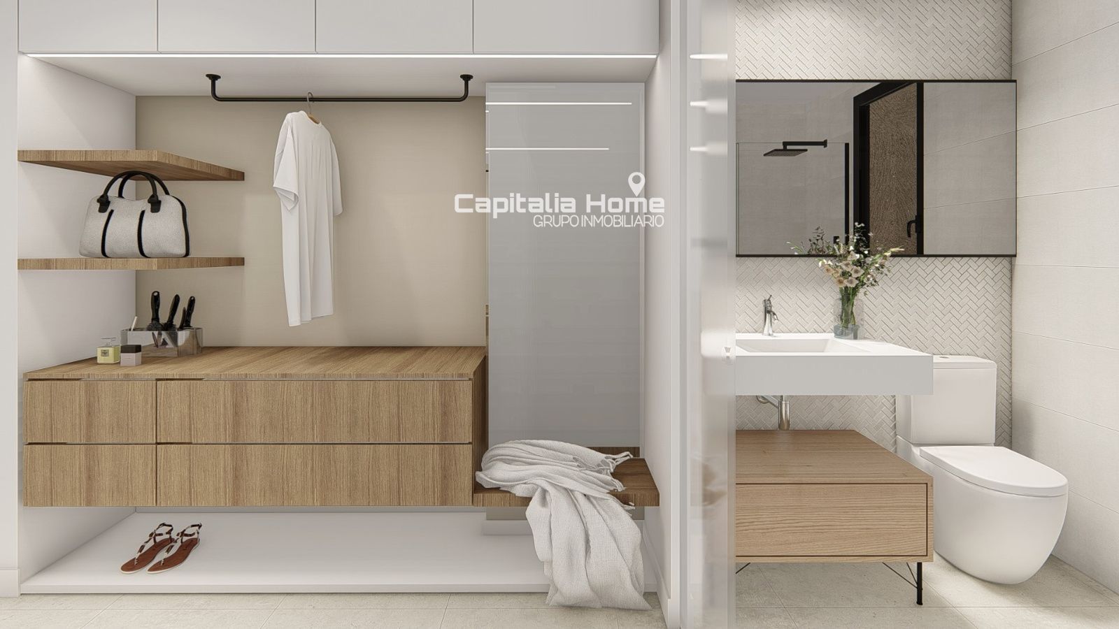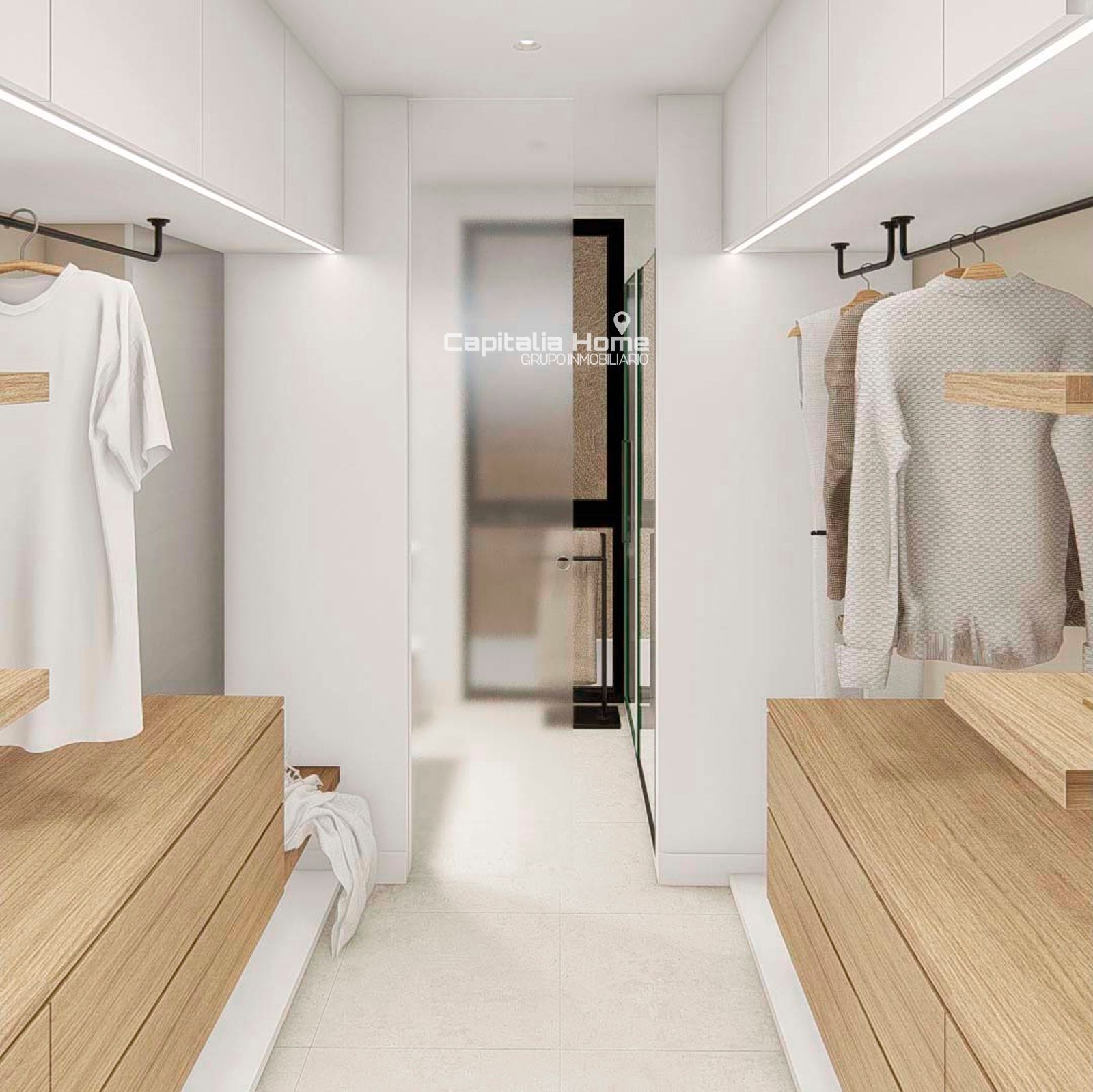 La carpintería exterior de aluminio con rotura de puente térmico, lacada al fuego, junto con el doble acristalamiento bajo emisivo, asegura un excelente aislamiento, confort acústico y eficiencia energética. En el interior, puertas y armarios diseñados a medida refuerzan la funcionalidad y el diseño cuidado de cada espacio.